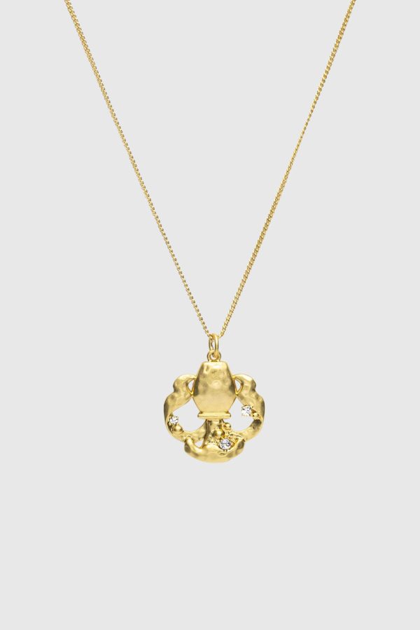 We made this necklace for all you Aquarian’s out there. Crafted from highly polished gold, it features a water-bearer pendant that’s set with dainty pavé crystals.