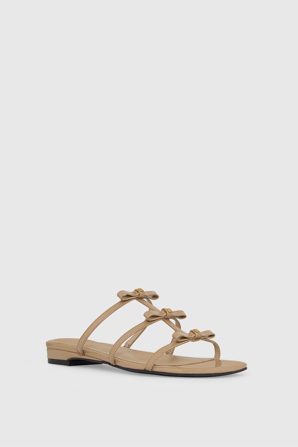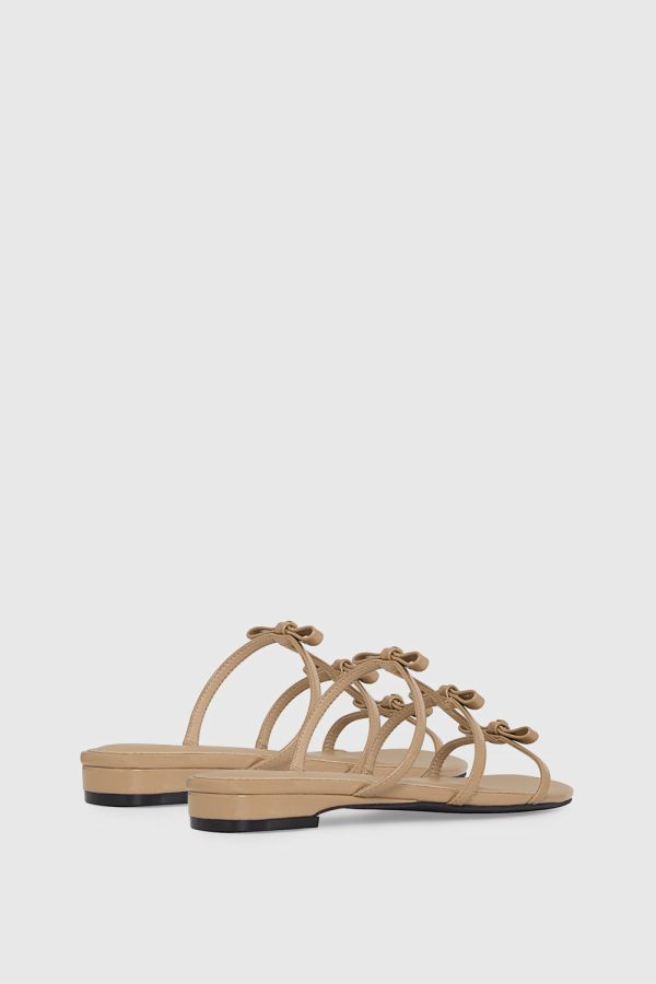 A refined take on an everyday sandal, the Bow Flat features a dome stud bow detail that adds a touch of edge. Designed with an asymmetrical toe shape, this slip-on is made for effortless wear. The padded insole ensures comfort, while elastic walking gores allow for a flexible fit. Finished with a durable rubber sole.