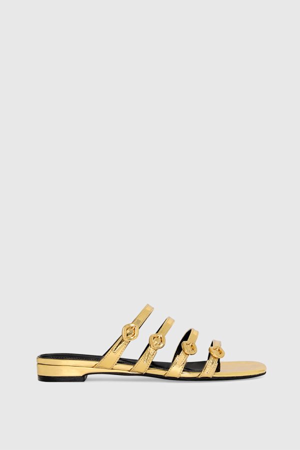 This sandal redefines casual elegance with its multi-strap design and signature Rebecca Minkoff curb link buckle ornaments. The mini wedge heel and padded insole ensure comfort, while the rubber sole provides traction for all-day wear.