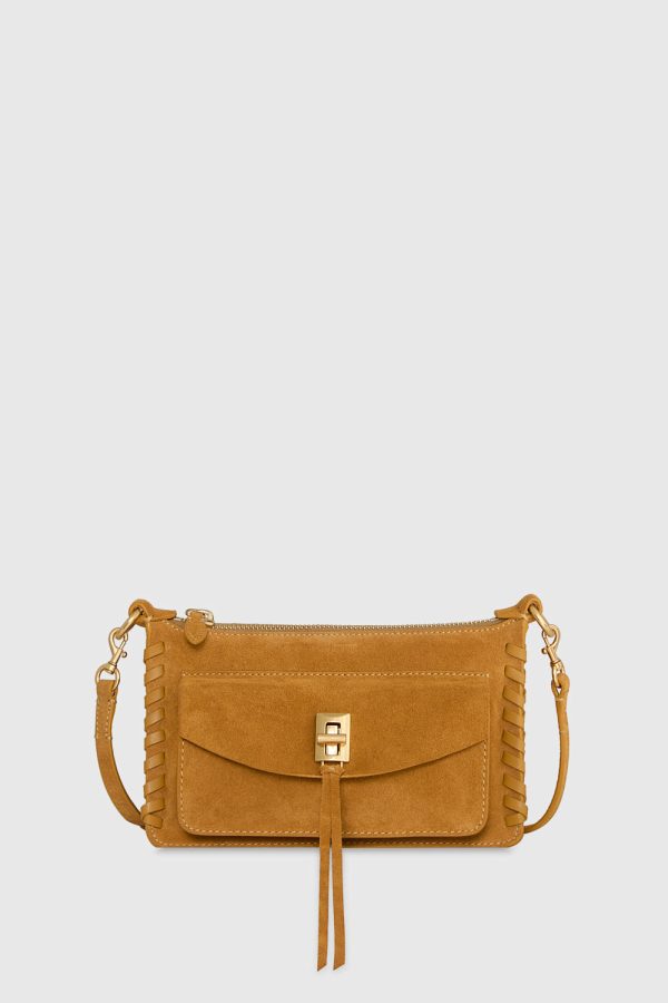 A bold mini bag with major personality. The Darren Whipstitch Mini Top Zip Crossbody in Adriano suede features whipstitched edges and a statement top zip closure. A matching adjustable strap ensures versatile wear, while antique brass hardware completes the look.