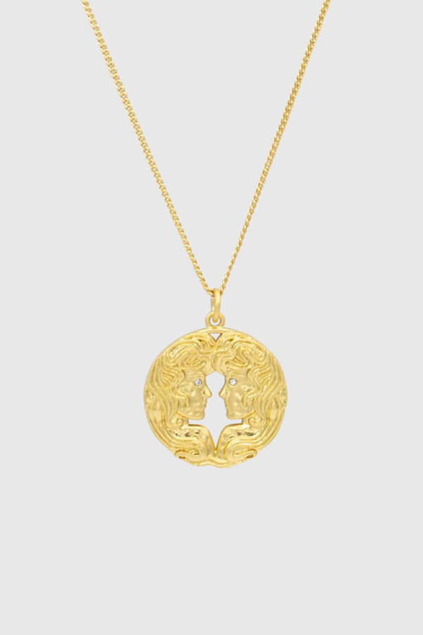We made this necklace for all you Gemini’s out there. Crafted from highly polished gold, it features a twin pendant that’s set with dainty pavé crystals.