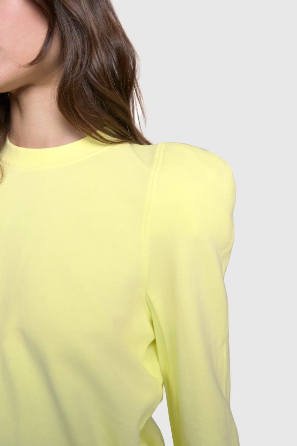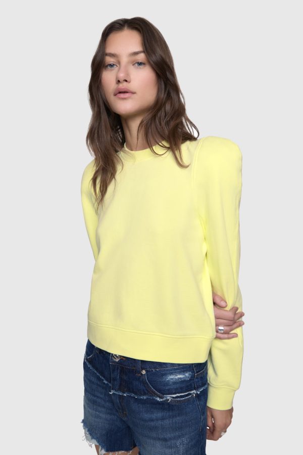 The Jade Sculpted Sweatshirt is crafted from French terry cotton for luxurious softness and breathability. This sweatshirt features sculpted shoulder pads for structure and sophistication, complemented by a classic crew neckline and ribbed bottom openings.