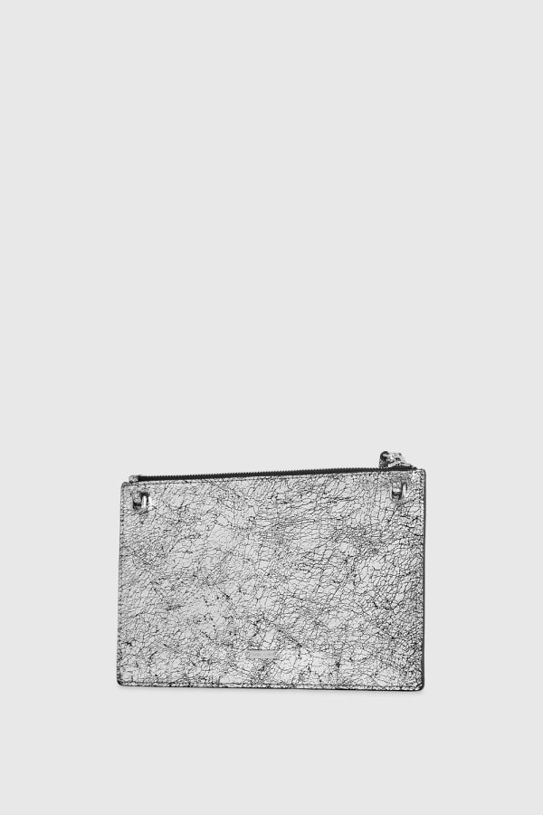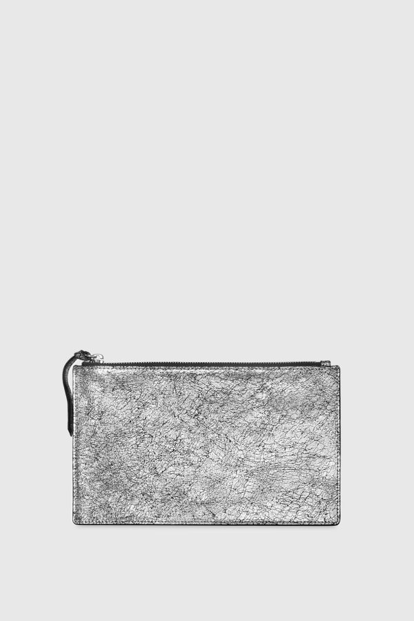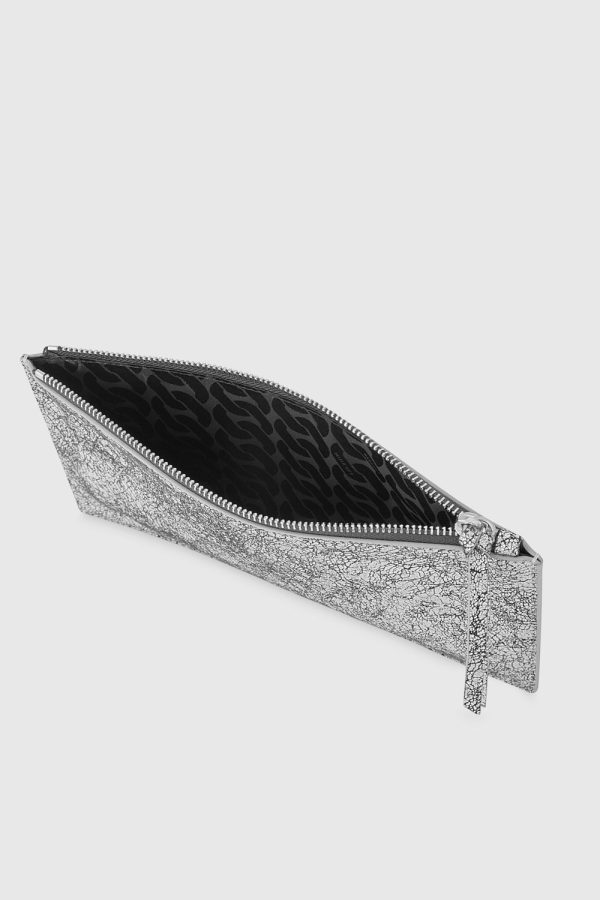 Elevate your accessory game with the distressed metallic silver leather finish, exuding a touch of glamour while providing ample space for your essentials.