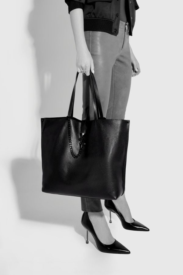 Even roomier than our already roomy Megan Tote, the Megan Large Tote is a classic shopper tote that easily doubles as an overnight bag. It includes a padded interior pocket to store your laptop and other electronics. Made from genuine leather, it’s topped off with black shellac dog-clip hardware and features a discreet magnetic snap closure.