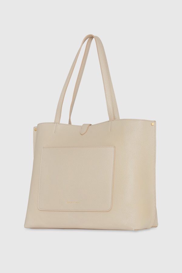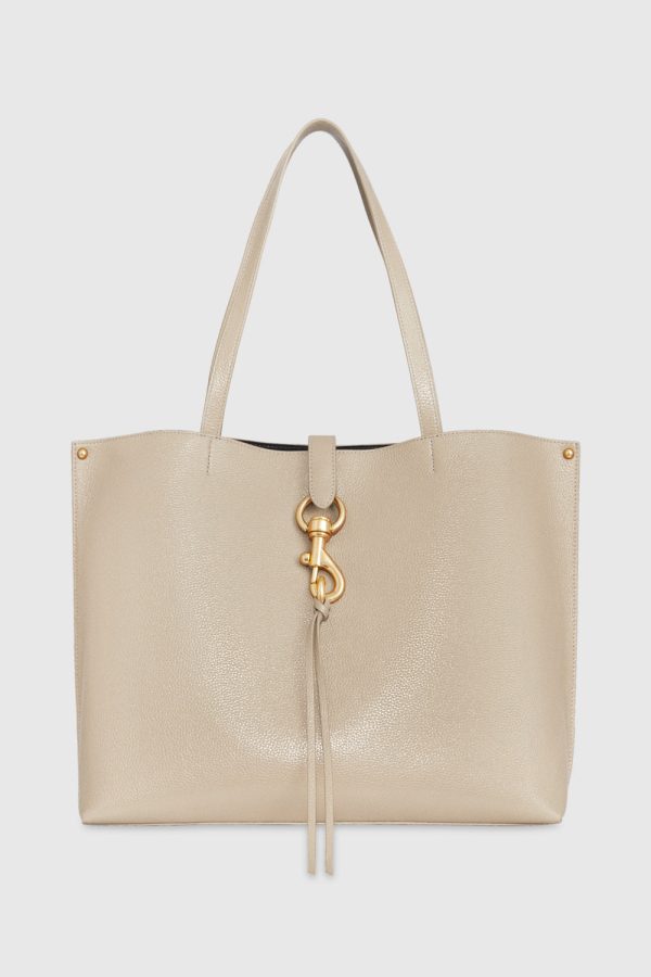Roomy enough for even the busiest of days, Megan has a classic shopper tote silhouette that can fit your laptop, gym clothes, and much more. Made from soft leather, it’s topped off with antique brass dog-clip hardware and features a discreet magnetic snap closure.