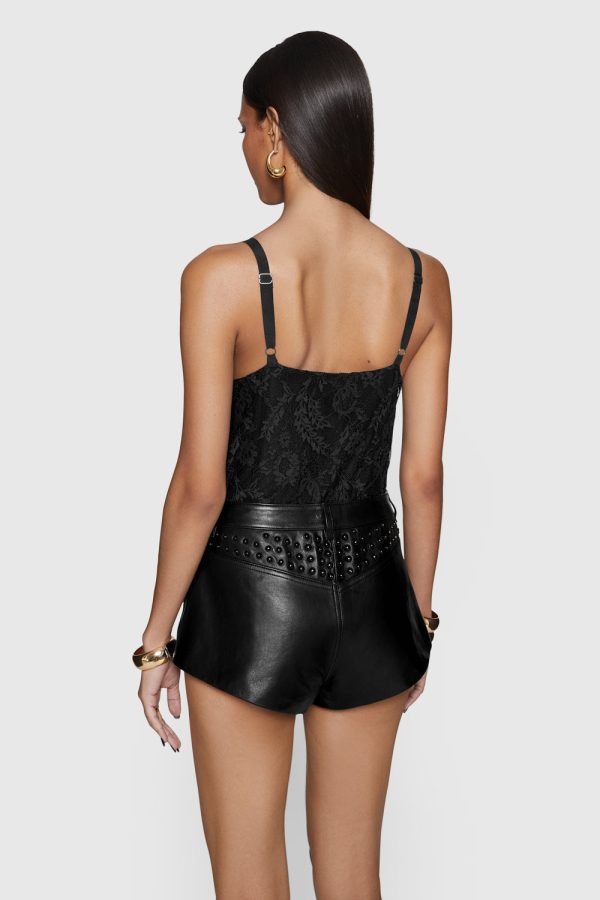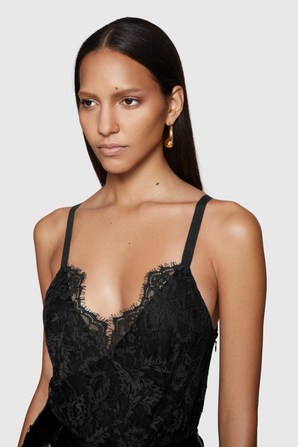 Indulge in the romantic allure of this daring bodysuit, crafted with delicate sheer lace that gracefully shapes your curves. The Parker bodysuit boasts a daring V-neckline and slender straps. The thong bottom features snap closures, ensuring a comfortable and secure fit.