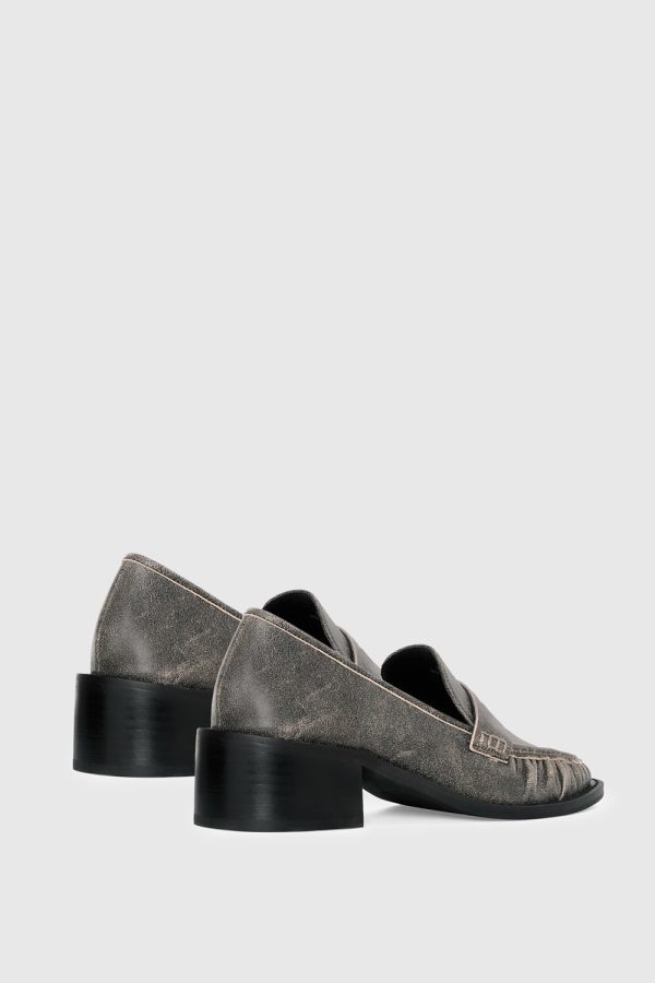 Step up your style with the Ruched Loafer. This chic loafer, featuring a stylish block heel, is crafted from luxe leather with a rounded toe and ruched details. The slip on style ensures all-day comfort, making it a must-have for your wardrobe.